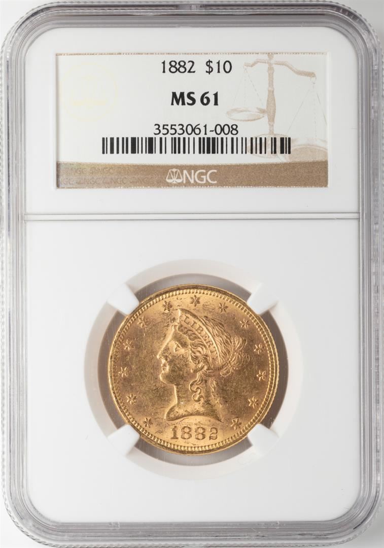 One 1882 $10 Liberty Head Eagle Gold Coin NGC MS61. NGC Certified.