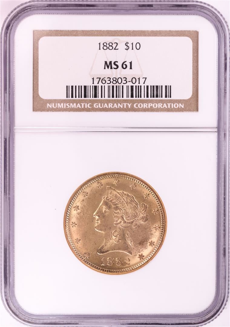One 1882 $10 Liberty Head Eagle Gold Coin NGC MS61. NGC Certified.