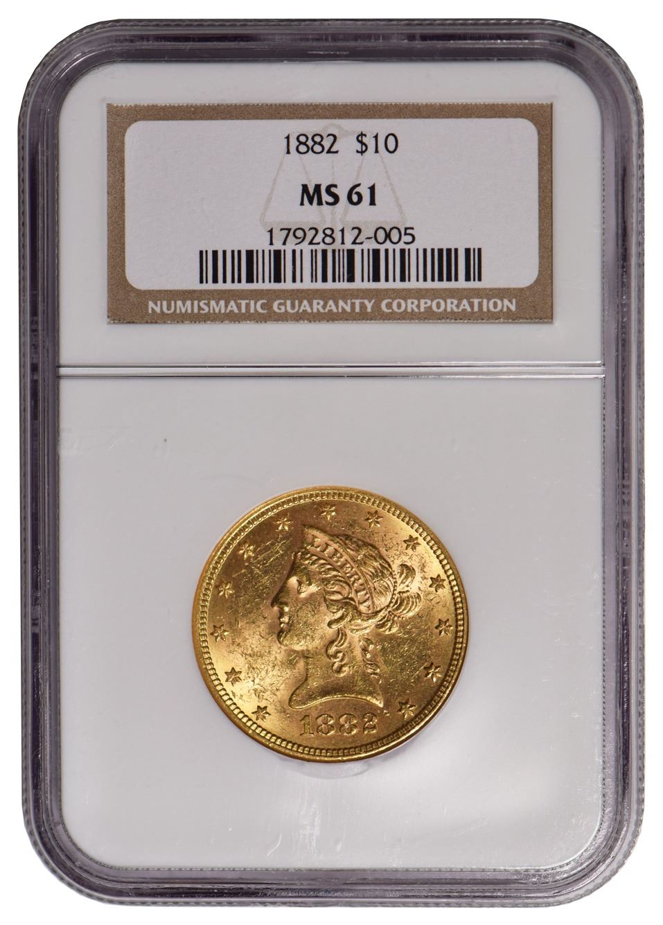 One 1882 $10 Liberty Head Eagle Gold Coin NGC MS61.