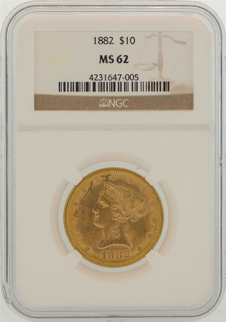 One 1882 $10 Liberty Head Eagle Gold Coin NGC MS62. NGC Certified.