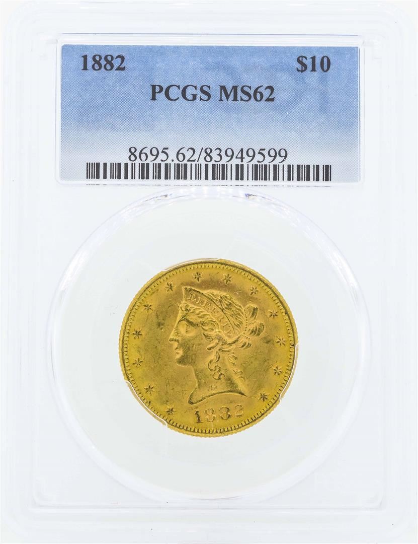 One 1882 $10 Liberty Head Eagle Gold Coin PCGS MS62. PCGS Graded.