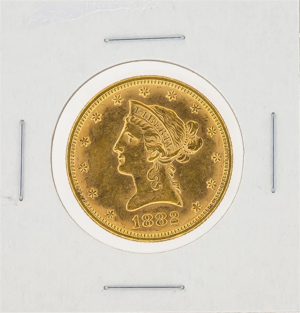 One 1882 $10 Liberty Head Eagle Gold Coin.