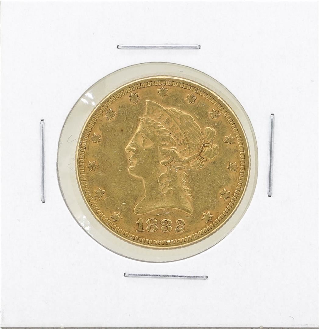 One 1882 $10 Liberty Head Eagle Gold Coin.