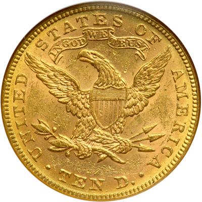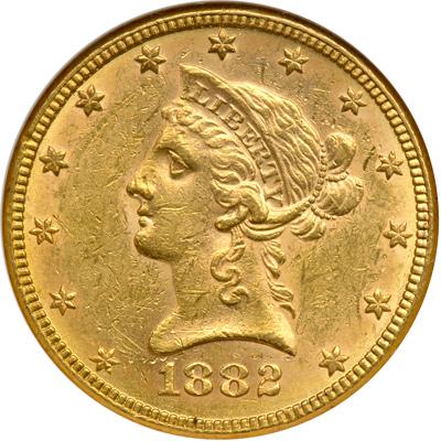 1882 $10 Liberty. NGC graded MS-60. Frosty and lightly toned.