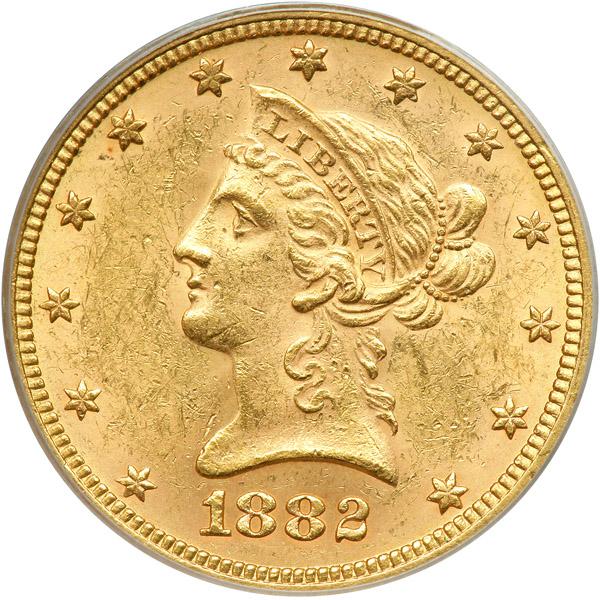 1882 $10 Liberty. PCGS graded MS-62. Frosty and untoned (PCGS # 8695) .