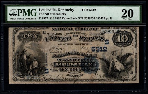 One 1882 $10 Louisville National Bank Note PMG 20.