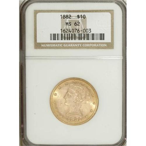 1882 $10 MS62 NGC. NGC Census: (2640/640). PCGS Po