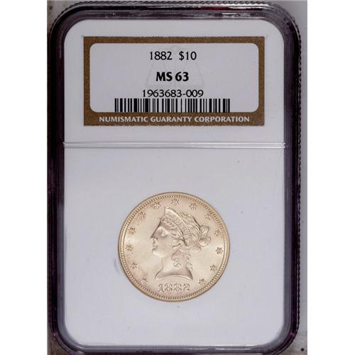 1882 $10 MS63 NGC. A lustrous, well struck, and lightl 1882[$10] MS63 NGC.