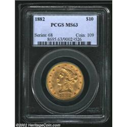 1882 $10 MS63 PCGS. A well struck and relatively unabraded representative with extensive luster and.