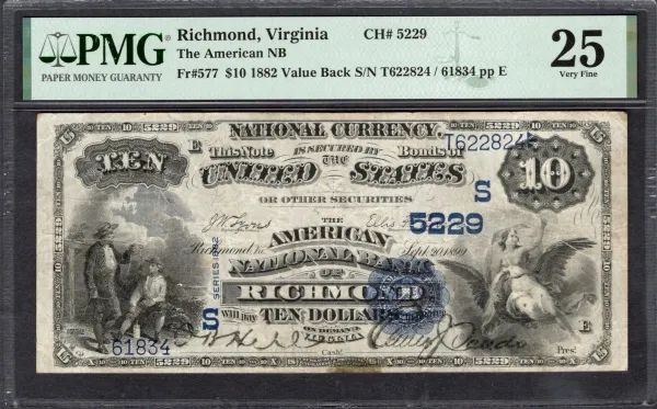 One 1882 $10 Richmond VA National PMG 25.