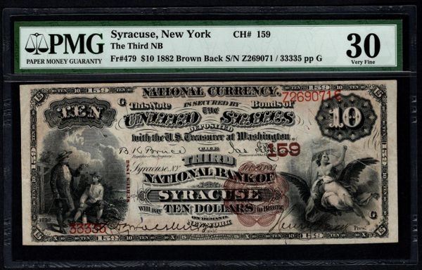 One 1882 $10 Syracuse NY National Note PMG 30.