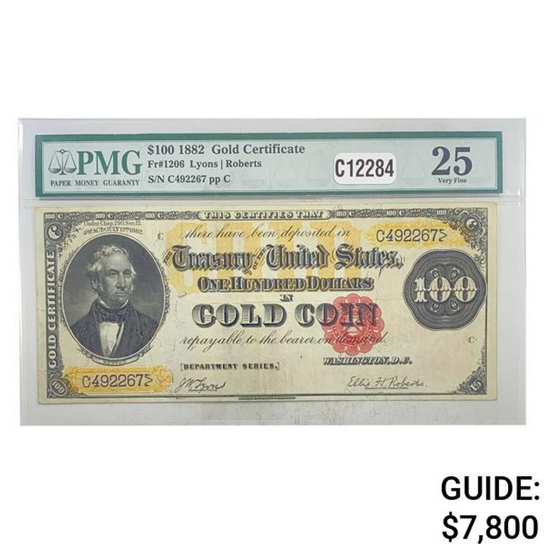 1882 $100 "BENTON" GOLD CERTIFICATE PMG VF-25