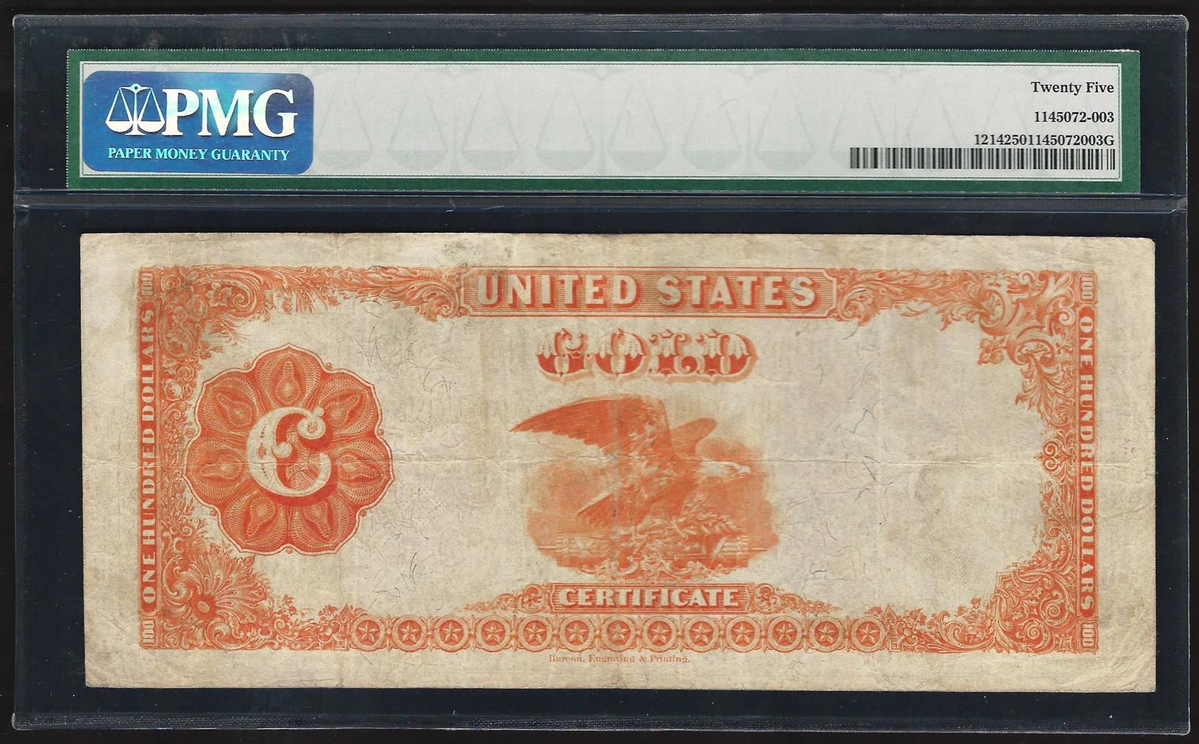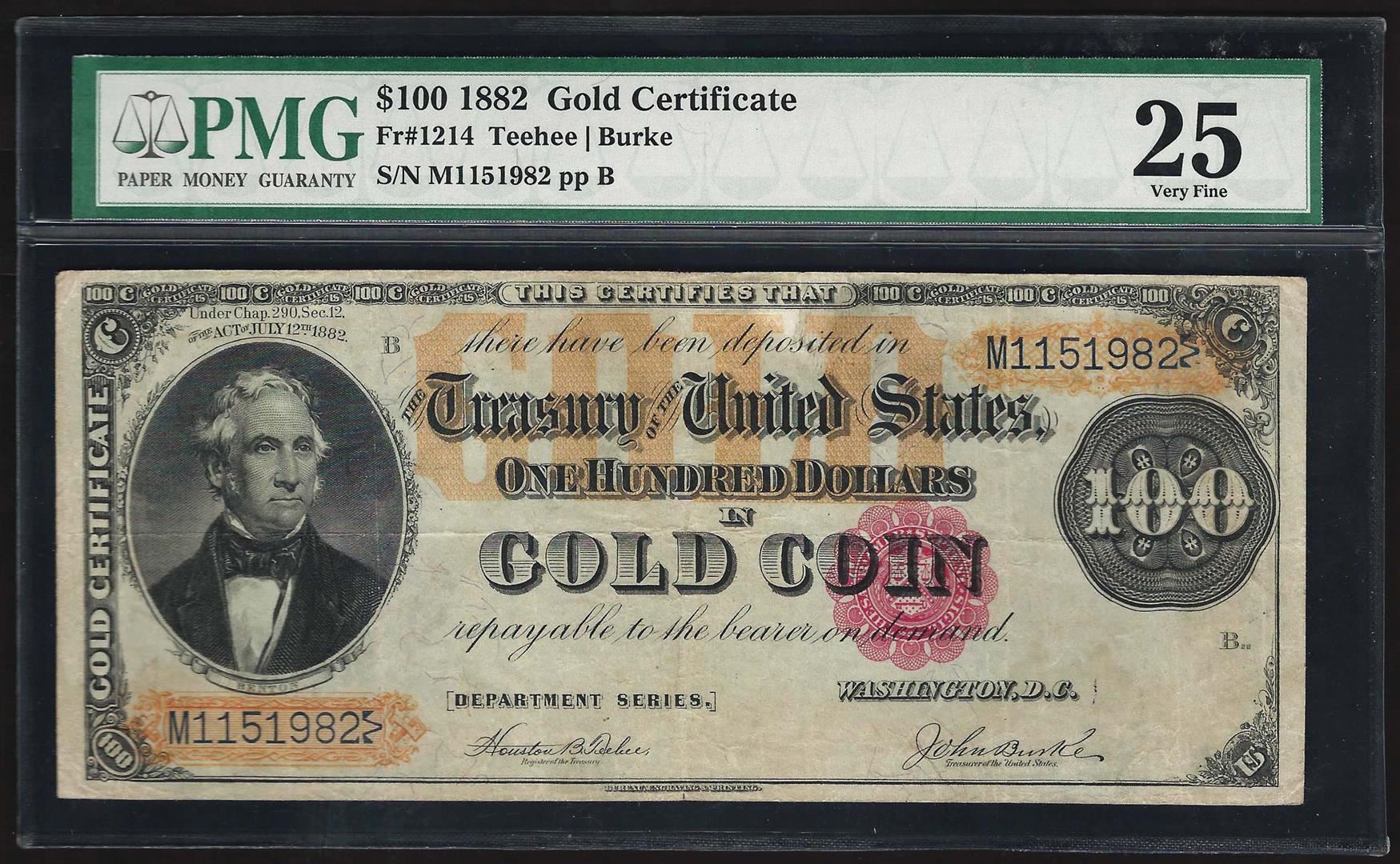 One 1882 $100 Gold Certificate Note Fr.1214 PMG Very Fine 25. PMG Certified.