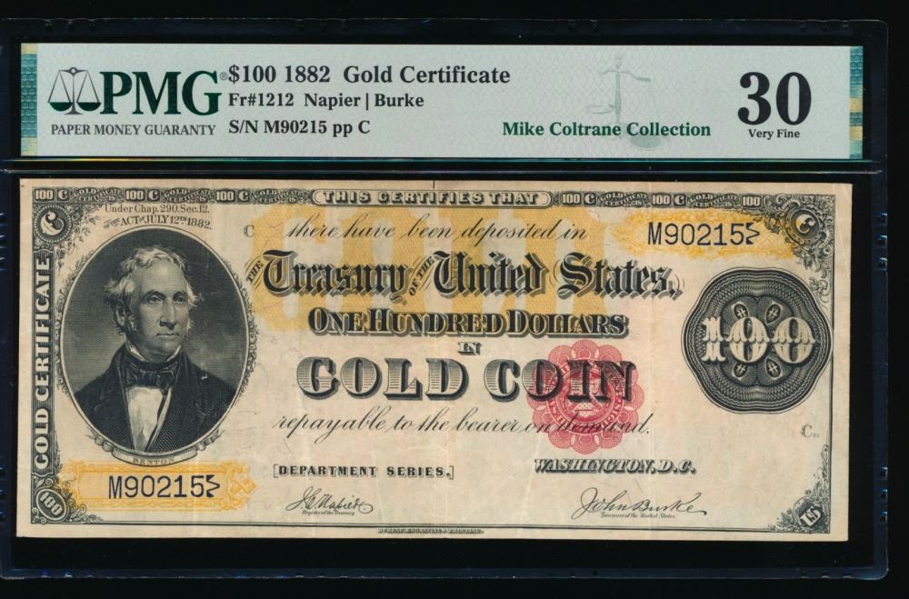 One 1882 $100 Gold Certificate PMG 30.