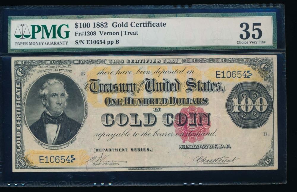 One 1882 $100 Gold Certificate PMG 35.