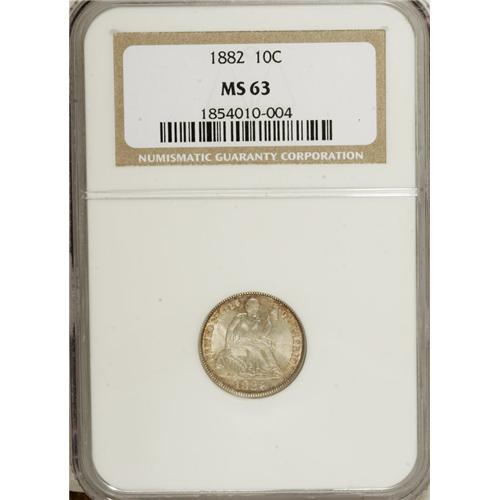 1882 10C MS63 NGC. Brilliant with a light beige patina