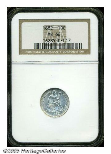 <B>1882<10C> MS66 NGC.</B></I> Sharply struck, this is a well-balanced coin that is brilliant throughout and displays a hard, metallic sheen over each side. A nearly flawless type coin.