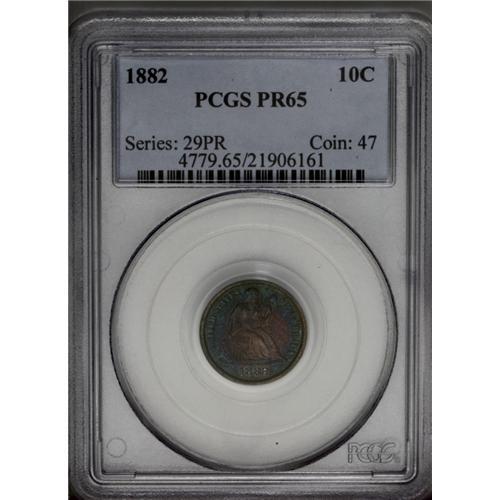1882 10C PR65 PCGS. Deeply toned in emerald-green and 1882[10C] PR65 PCGS.