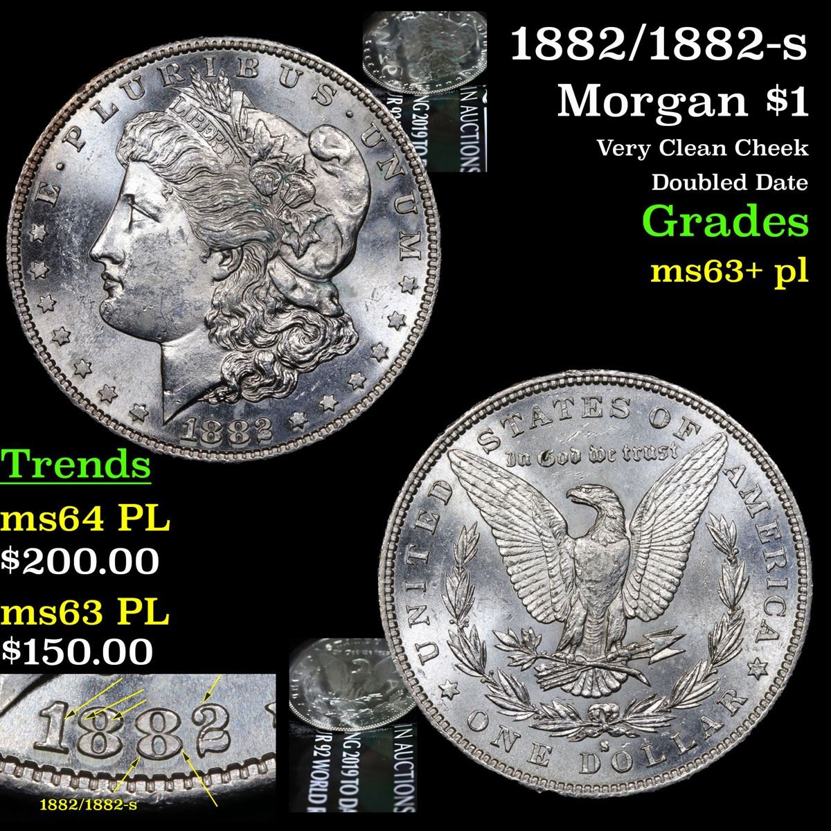 1882/1882-s Very Clean Cheek Doubled Date Morgan Dollar $1 Grades Select Unc+ PL.