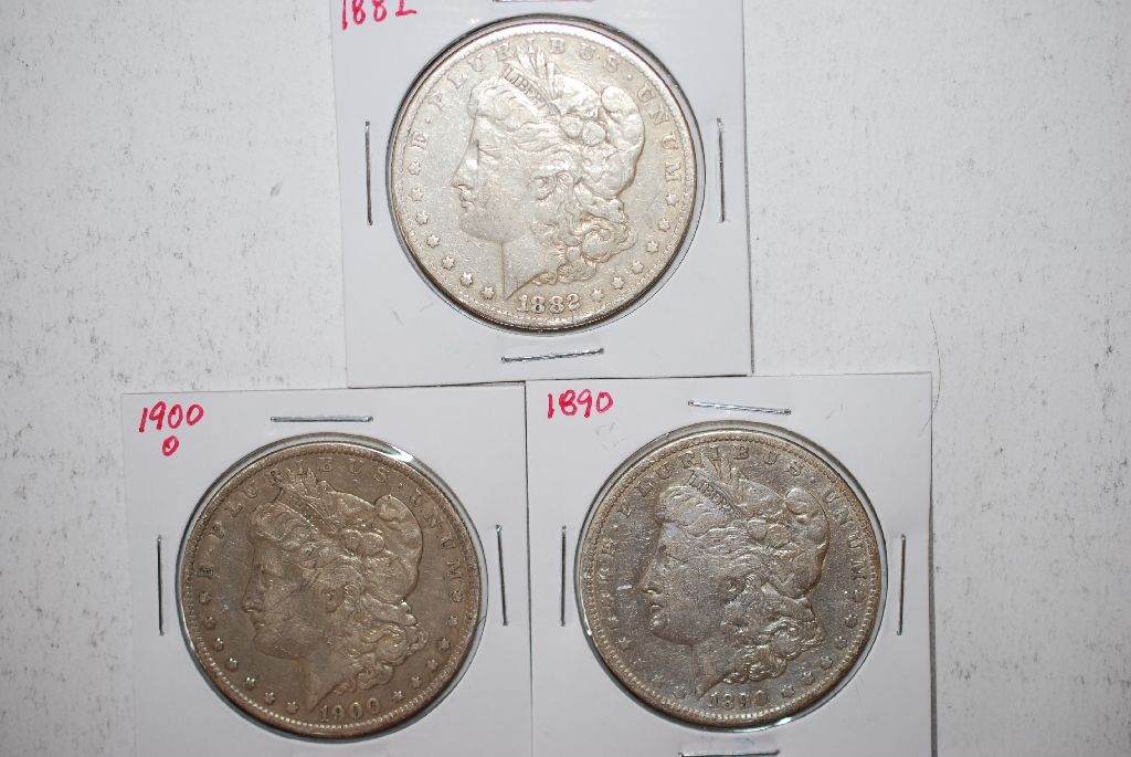 1882, 1890 & 1900-O Silver Morgan $1; Lot of 3; EST. $100-125