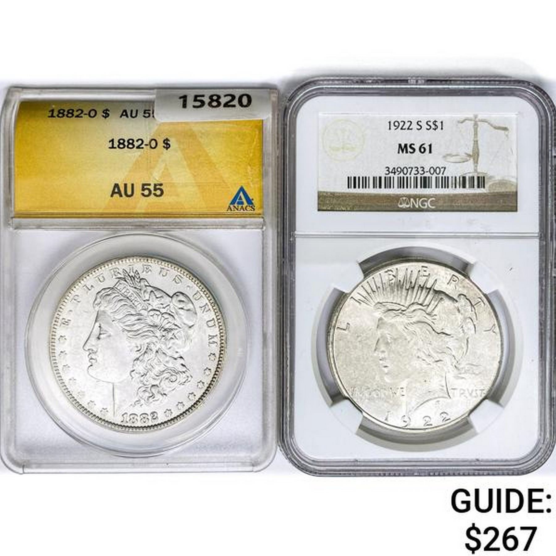 1882&1922 [2] Morgan Silver Dollar NGC/ANACS MS/AU