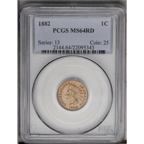 1882 1C MS64 Red PCGS. The attractive copper-tan, lust 1882[1C] MS64 Red PCGS.