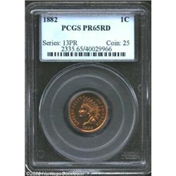1882 1C PR65 Red PCGS. While a common date among proof Indian Cents from the 1880s, this piece is ne