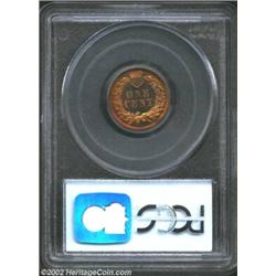1882 1C PR65 Red PCGS. While a common date among proof Indian Cents from the 1880s, this piece is nevertheless an exceptional specimen and a great type coin. The fields glitter with prooflike reflectivity and the centers are bright orange-red while the peripheries are outlined in deep cherry-red (which is much more pronounced on the reverse). The only mentionable surface "defect" is a short horizontal planchet flaw above the space between the second and third feathers in the headdress.From the "Newmismatist" Collection; the All-Time #1 PCGS Registry Set. Important notice: We expect to be auctioning lots at the rate of 200-250 per hour. Sometimes eBay Premier live bid software cannot keep up with that pace, so we strongly recommend that you place a realistic proxy bid now as insurance to avoid disappointment. Also please note that all Heritage/CAA lots purchased through eBay Premier carry a 20% Buyer's Premium. Please make sure you read the Terms and Conditions.