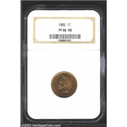 1882 1C PR66 Red and Brown NGC. A splendid, high grade example that is highly lustrous and shows a slight iridescent sheen. Important notice: We expect to be auctioning lots at the rate of 200-250 per hour. Sometimes eBay Premier live bid software cannot keep up with that pace, so we strongly recommend that you place a realistic proxy bid now as insurance to avoid disappointment. Also please note that all Heritage/CAA lots purchased through eBay Premier carry a 20% Buyer's Premium. Please make sure you read the Terms and Conditions.