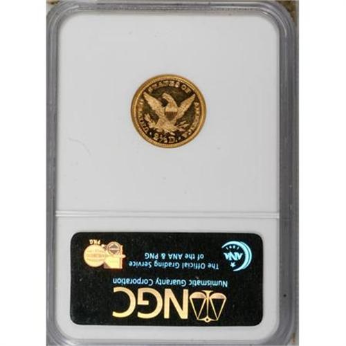<B>1882 $2 1/2 MS62 Deep Prooflike NGC.</B></I> Reflective surfaces are typical for Mint State examples of the 1882 quarter eagle, an artifact of its tiny mintage of only 4,000 pieces. Still, it is difficult to imagine another piece with the reflectivity of this amazing example. Boldly impressed devices protrude from lightly abraded fields that offer mirror-like intensity, even from a distance. The <I>only</B></I> 1882 quarter eagle certified as Deep Prooflike by NGC, and immensely desirable as such (8/07).<BR><BR><B>Coin Engraver:</B> Christian Gobrecht<BR><BR><b>Shipping:</b> Coins & Currency (<a target="_blank" href="http://www.heritageauctions.com/common/shipping.php">view shipping information</a>)