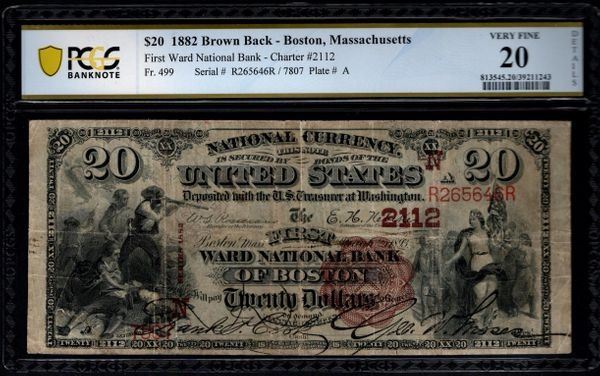 One 1882 $20 First Ward National Bank Note PCGS 20.