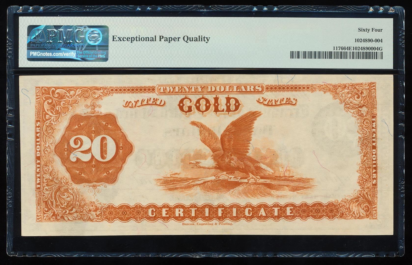 One 1882 $20 Gold Certificate Note Fr.1176 PMG Choice Uncirculated 64EPQ.