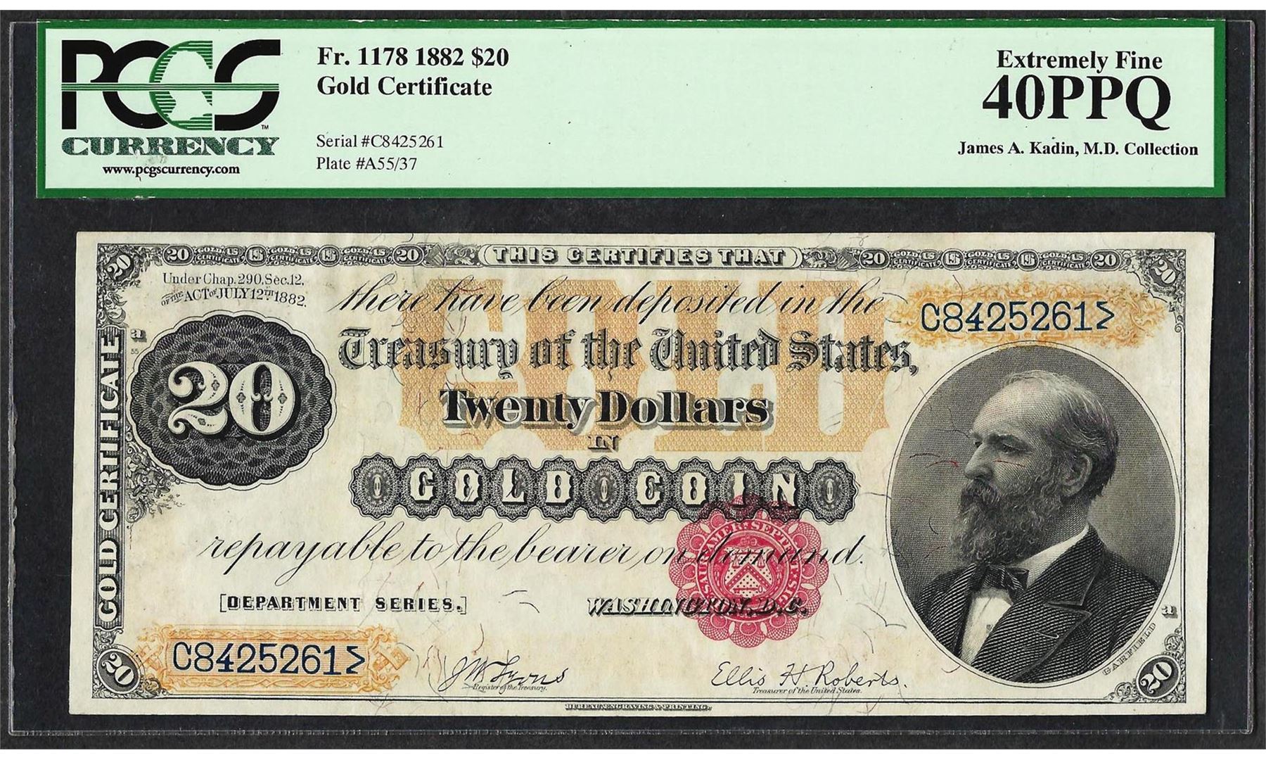 One 1882 $20 Gold Certificate Note Fr.1178 PCGS Extremely Fine 40PPQ. PCGS Graded.