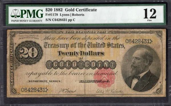 One 1882 $20 Gold Certificate PMG 12.