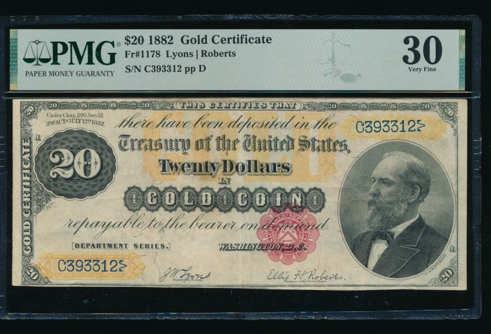One 1882 $20 Gold Certificate PMG 30.