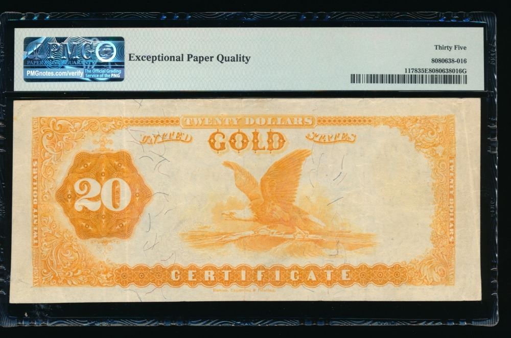 One 1882 $20 Gold Certificate PMG 35EPQ.