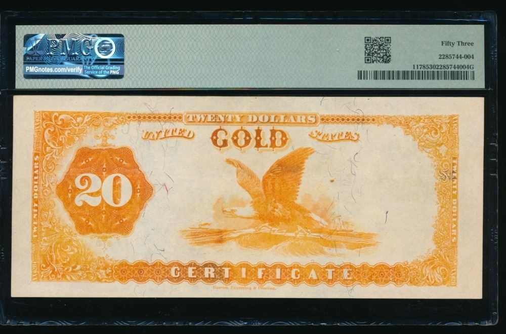 One 1882 $20 Gold Certificate PMG 53.