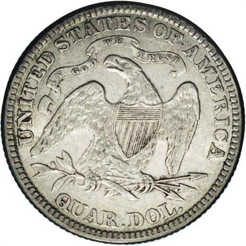 <B>1882<25C> AU58 NGC.</B></I> A charming silver-gray example of this scarce issue. Lightly marked and crisply struck. The 1882 has the highest Philadelphia Mint production of its decade, yet only 15,200 pieces were struck. Light clash marks (as made) outline the central devices.