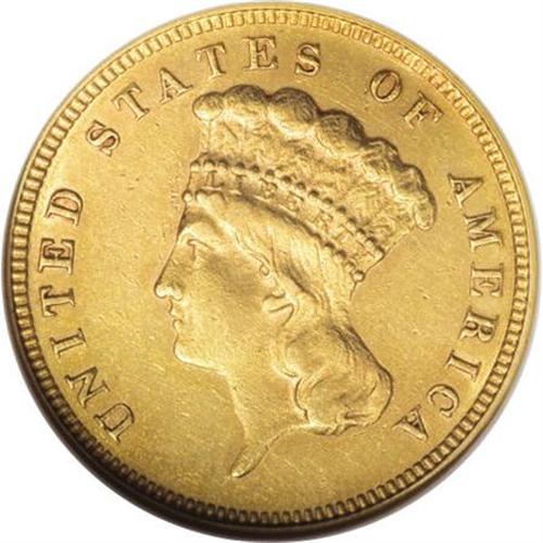 <B>1882 $3 AU55 ANACS.</B></I> Only 1,500 business strikes were issued for this difficult three dollar issue. This example has slight friction on the forehead and the left border of the hair, but luster fills the plumes, wreath, and legends. The 2 is widely repunched north, as usually seen.<BR><BR><b>Shipping:</b> Coins & Currency (<a target="_blank" href="http://www.heritageauctions.com/common/shipping.php">view shipping information</a>)
