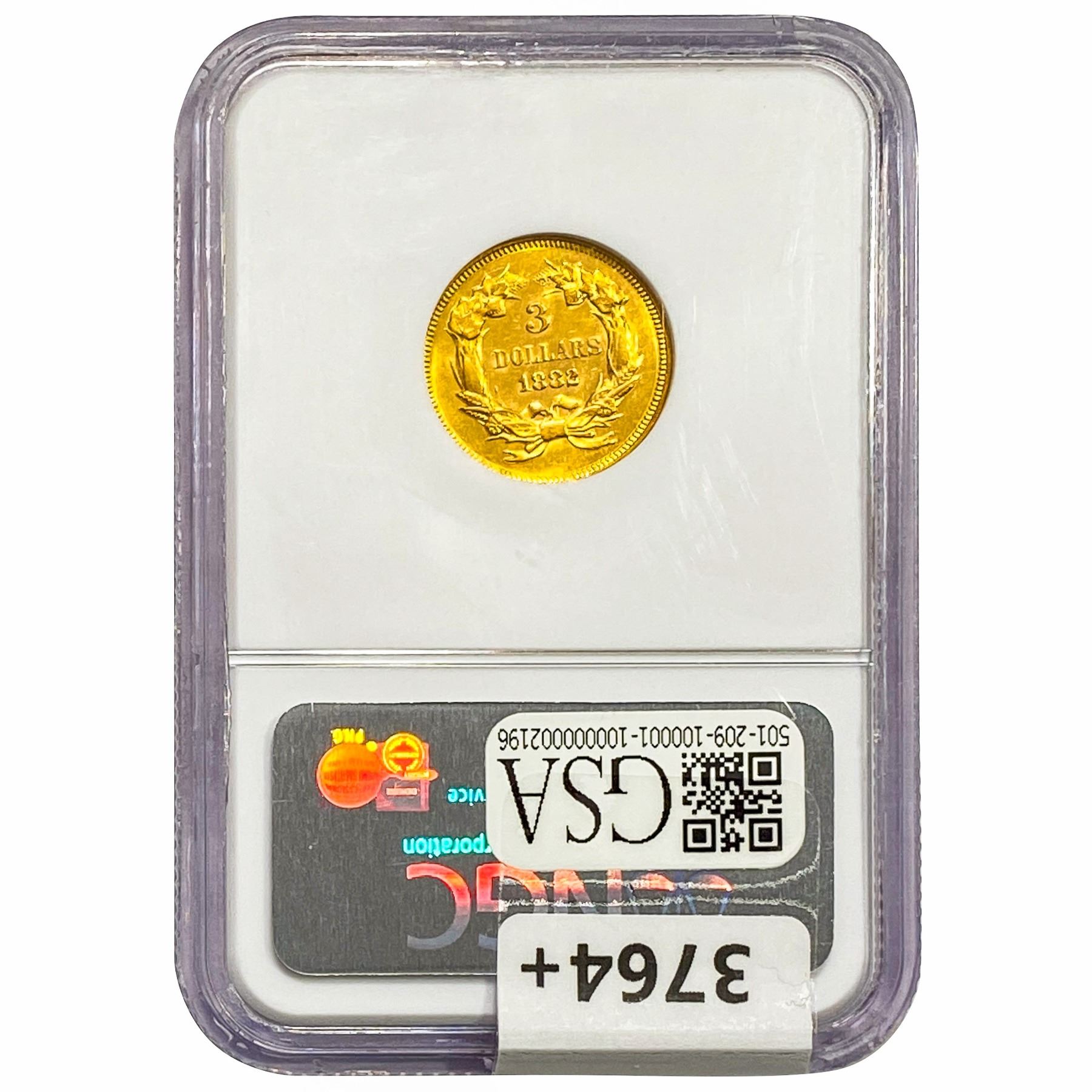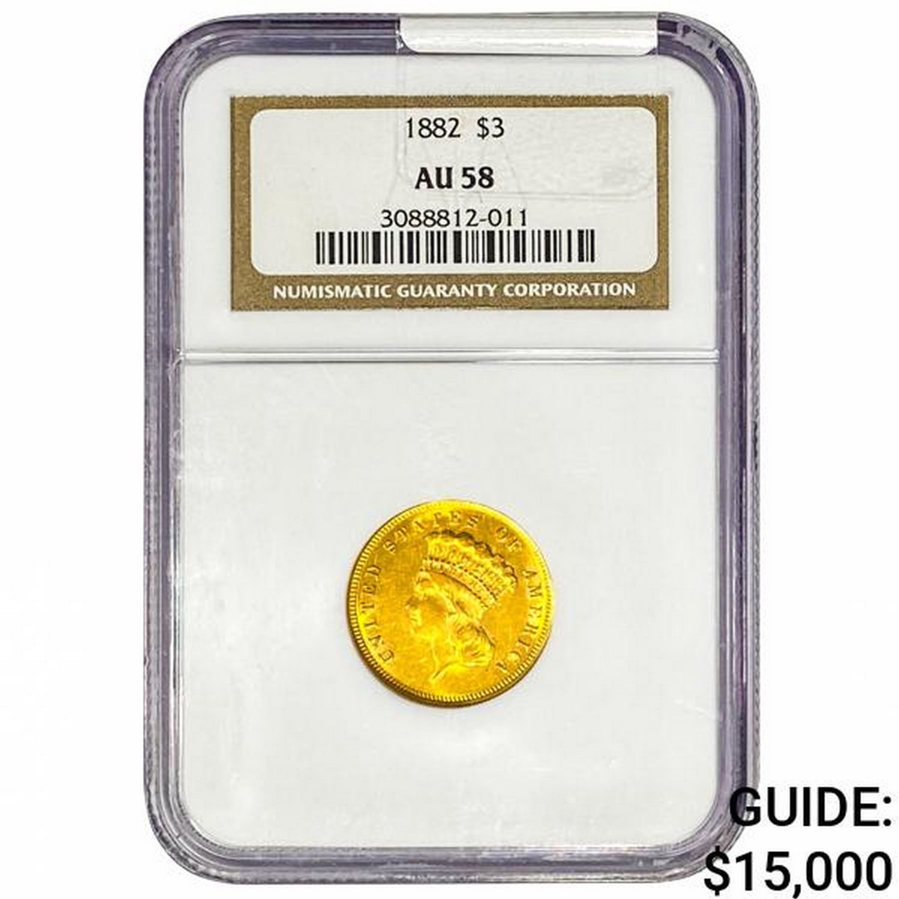1882 $3 Gold Piece NGC AU58