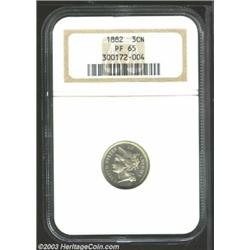 <TR><TD width="100%"><TABLE cellSpacing=1 cellPadding=3 width="100%" border=0><TBODY><TR><TD width="100%" bgColor=#79735c><FONT face=arial color=#ffffff size=3><B>Description</B> </FONT></TD></TR><TR><TD width="100%" bgColor=#ffffff><FONT face=arial size=2><B>1882 3CN PR65 NGC.</B></I> Pale streaks of honey-gold patina endow this well struck Gem. Exquisitely preserved and with impressive eye appeal for the seemingly conservative grade. The reverse has a thin die crack (as made) at 10 o'clock. Business strikes and proofs combined for only 25,300 pieces. </FONT></TD></TR></TBODY></TABLE></TD></TR></TBODY></TABLE><BR><A name=PricesRealized></A><TABLE cellSpacing=0 cellPadding=0 width="100%" bgColor=#000000 border=0><TBODY><TR><TD width="100%"><TABLE cellSpacing=1 cellPadding=3 width="100%" border=0><TBODY><TR><TD width="100%" bgColor=#79735c><A name=PR><FONT face=arial color=#ffffff size=3><B>Previous Prices from Heritage Auctions</B> </FONT></A></TD></TR><TR><TD bgColor=#f6f6ed><TABLE cellSpacing=0 cellPadding=0 width="100%" border=1><TBODY><TR><TD align=middle width="33%"><B>Date</B></TD><TD align=middle width="33%"><B>Service</B></TD><TD align=middle width="33%"><B>Price</B></TD></TR><TR bgColor=whitesmoke><TD width="33%"><B>01/07/2000</B></TD><TD width="33%">PCGS</TD><TD width="33%">$477.25</TD></TR><TR bgColor=whitesmoke><TD width="33%"><B>01/07/2000</B></TD><TD width="33%">PCGS</TD><TD width="33%">$477.25</TD></TR><TR bgColor=whitesmoke><TD width="33%"><B>06/02/1995</B></TD><TD width="33%">PCGS</TD><TD width="33%">$412.50</TD></TR><TR bgColor=whitesmoke><TD width="33%"><B>09/21/1996</B></TD><TD width="33%">PCGS</TD><TD width="33%">$363.00</TD></TR><TR bgColor=whitesmoke><TD width="33%"><B>09/21/1996</B></TD><TD width="33%">PCGS</TD><TD width="33%">$363.00</TD></TR><TR bgColor=whitesmoke><TD width="33%"><B>06/07/1997</B></TD><TD width="33%">PCGS</TD><TD width="33%">$357.50</TD></TR><TR bgColor=whitesmoke><TD width="33%"><B>02/25/2003</B></TD><TD width="33%">PCGS</TD><TD width="33%">$379.50</TD></TR><TR bgColor=whitesmoke><TD width="33%"><B>02/25/2003</B></TD><TD width="33%">PCGS</TD><TD width="33%">$379.50</TD></TR><TR bgColor=whitesmoke><TD width="33%"><B>03/04/2003</B></TD><TD width="33%">PCGS</TD><TD width="33%">$350.75</TD></TR><TR bgColor=whitesmoke><TD width="33%"><B>07/30/2002</B></TD><TD width="33%">NGC</TD><TD width="33%">$402.50</TD></TR><TR bgColor=whitesmoke><TD width="33%"><B>07/30/2002</B></TD><TD width="33%">NGC</TD><TD width="33%">$402.50</TD></TR><TR bgColor=whitesmoke><TD width="33%"><B>02/24/2001</B></TD><TD width="33%">NGC</TD><TD width="33%">$391.00</TD></TR><TR bgColor=whitesmoke><TD width="33%"><B>01/05/2001</B></TD><TD width="33%">NGC</TD><TD width="33%">$460.00</TD></TR><TR bgColor=whitesmoke><TD width="33%"><B>01/05/2001</B></TD><TD width="33%">NGC</TD><TD width="33%">$460.00</TD></TR><TR bgColor=whitesmoke><TD width="33%"><B>10/06/2000</B></TD><TD width="33%">NGC</TD><TD width="33%">$488.75</TD></TR><TR bgColor=whitesmoke><TD width="33%"><B>08/07/1998</B></TD><TD width="33%">NGC</TD><TD width="33%">$402.50</TD></TR><TR bgColor=whitesmoke><TD width="33%"><B>08/07/1998</B></TD><TD width="33%">NGC</TD><TD width="33%">$402.50</TD></TR><TR bgColor=whitesmoke><TD width="33%"><B>10/04/1995</B></TD><TD width="33%">NGC</TD><TD width="33%">$396.00</TD></TR><TR bgColor=whitesmoke><TD width="33%"><B>07/27/1993</B></TD><TD width="33%">NGC</TD><TD width="33%">$605.00</TD></TR><TR bgColor=whitesmoke><TD width="33%"><B>07/27/1993</B></TD><TD width="33%">NGC</TD><TD width="33%">$605.00</TD></TR><TR bgColor=whitesmoke><TD width="33%"><B>04/14/2000</B></TD><TD width="33%">NGC</TD><TD width="33%">$391.00</TD></TR><TR bgColor=whitesmoke><TD width="33%"><B>11/21/1997</B></TD><TD width="33%">NGC</TD><TD width="33%">$297.00</TD></TR><TR bgColor=whitesmoke><TD width="33%"><B>11/21/1997</B></TD><TD width="33%">NGC</TD><TD width="33%">$297.00</TD></TR><TR bgColor=whitesmoke><TD width="33%"><B>08/14/1999</B></TD><TD width="33%">NGC</TD><TD width="33%">$356.50</TD></TR><TR bgColor=whitesmoke><TD width="33%"><B>09/10/1997</B></TD><TD width="33%">NGC</TD><TD width="33%">$308.00</TD></TR><TR bgColor=whitesmoke><TD width="33%"><B>09/10/1997</B></TD><TD width="33%">NGC</TD><TD width="33%">$308.00</TD></TR><TR bgColor=whitesmoke><TD width="33%"><B>02/11/2003</B></TD><TD width="33%">PCGS</TD><TD width="33%">$379.50</TD></TR><TR bgColor=whitesmoke><TD width="33%"><B>03/23/2003</B></TD><TD width="33%">PCGS</TD><TD width="33%">$402.50</TD></TR><TR bgColor=whitesmoke><TD width="33%"><B>03/23/2003</B></TD><TD width="33%">PCGS</TD><TD width="33%">$402.50</TD></TR><TR bgColor=whitesmoke><TD width="33%"><B>03/25/2003</B></TD><TD width="33%">PCGS</TD><TD width="33%">$356.50</TD></TR><TR bgColor=whitesmoke><TD width="33%"><B>01/11/2003</B></TD><TD width="33%">PCGS</TD><TD width="33%">$339.25</TD></TR><TR bgColor=whitesmoke><TD width="33%"><B>01/11/2003</B></TD><TD width="33%">PCGS</TD><TD width="33%">$339.25</TD></TR><TR bgColor=whitesmoke><TD width="33%"><B>01/11/2003</B></TD><TD width="33%">PCGS</TD><TD width="33%">$345.00</TD></TR><TR bgColor=whitesmoke><TD width="33%"><B>10/02/2000</B></TD><TD width="33%">PCGS</TD><TD width="33%">$604.00</TD></TR><TR bgColor=whitesmoke><TD width="33%"><B>10/02/2000</B></TD><TD width="33%">PCGS</TD><TD width="33%">$604.00</TD></TR><TR bgColor=whitesmoke><TD width="33%"><B>01/30/2001</B></TD><TD width="33%">PCGS</TD><TD width="33%">$390.00</TD></TR><TR bgColor=whitesmoke><TD width="33%"><B>12/05/2000</B></TD><TD width="33%">PCGS</TD><TD width="33%">$390.00</TD></TR><TR bgColor=whitesmoke><TD width="33%"><B>12/05/2000</B></TD><TD width="33%">PCGS</TD><TD width="33%">$390.00</TD></TR><TR bgColor=whitesmoke><TD width="33%"><B>01/06/1996</B></TD><TD width="33%">PCGS</TD><TD width="33%">$397.10</TD></TR><TR bgColor=whitesmoke><TD width="33%"><B>08/14/1999</B></TD><TD width="33%">PCGS</TD><TD width="33%">$747.50</TD></TR><TR bgColor=whitesmoke><TD width="33%"><B>08/14/1999</