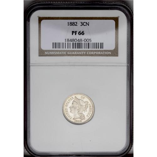 <B>1882<3CN> PR66 NGC.</B></I> A flashy, deeply reflective proof that shows significant (but unacknowledged) cameo contrast on each side. Lightly toned.