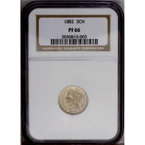 <B>1882<3CN> PR66 NGC.</B></I> An intricately struck Premium Gem with exceptional preservation and lovely original variegated chestnut-gold and cream-gray patina.