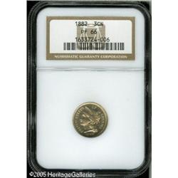 <B>1882 3CN PR66 NGC.</B></I> This is a wonderful Gem with deeply mirrored fields (unusually so) and lustrous devices. Mild cameo contrast remains, and the overall aesthetic appeal is exceptional. Pale gold toning on both sides.<BR><I>From The Mike Jacobson Collection.</B></I> Lot:5756