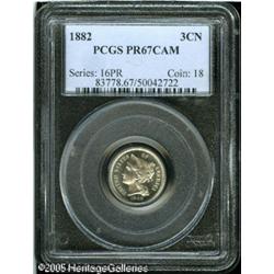 <B>1882 3CN PR67 Cameo PCGS.</B></I> Brilliant throughout and very deeply mirrored with considerable mint frost on the devices. A superior example of this popular type coin. Lot:5819