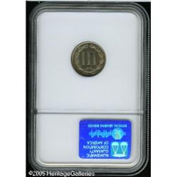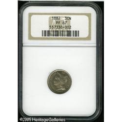 <B>1882 3CN PR67 NGC.</B></I> Pristine proof surfaces are bathed in pastel violet and crimson patination, and the devices are boldly impressed. This coin offers tremendous eye appeal.<BR><I>From The Mike Jacobson Collection.</B></I> Lot:5757