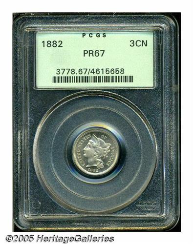 1882 3CN PR67 PCGS. Absolutely Superb quality, th