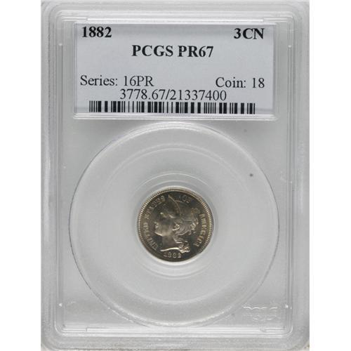 1882 3CN PR67 PCGS. This beautiful Superb Gem proof is