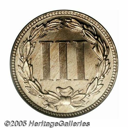 <B>1882<3CN> PR68 Cameo PCGS.</B></I> Pristine mirrored fields and chalky, equally well preserved features are untoned save for a touch of streaky golden color across the portrait. Inspection with a glass leaves the viewer just as impressed as a casual glance, the sure sign of an outstanding proof type coin. Population: 4 in 68 Cameo, 0 finer (4/05).<BR><I>From The Western Hills Collection.</B></I>