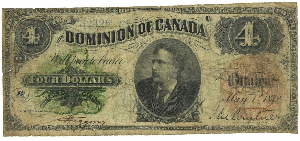 1882 $4 DC-10 #32426 PMG VG10 Net Edge and Internal Tears. A decent example.